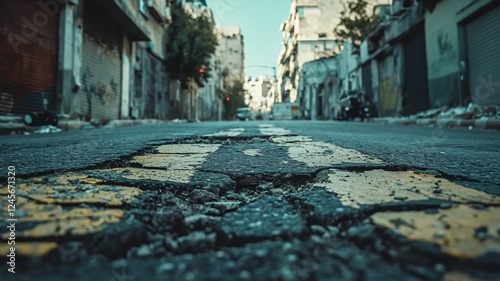 Crumbling City Street A CloseUp View of Deterioration