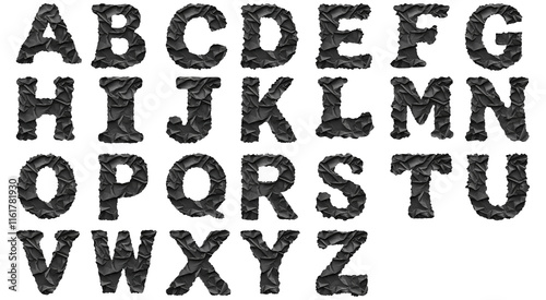 Crumpled black paper alphabet letters a to z clipart on transparent background