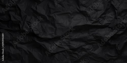 Crumpled Black Paper Texture with Intricate Details Showing Depth and Variation in Shades Ideal for Backgrounds or Artistic Projects