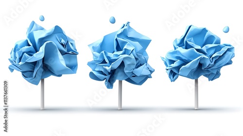 Crumpled Blue Tissues in a Display Arrangement on White Background