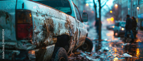 Crumpled Car Hood: Aftermath of Accident