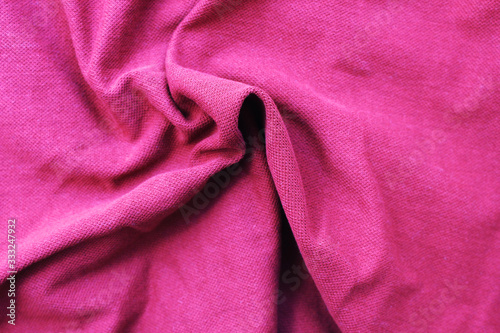 Crumpled fabric texture, purple wrinkled cotton sheet image. Heavy natural material, dark pink cloth structure of creasy linen fiber