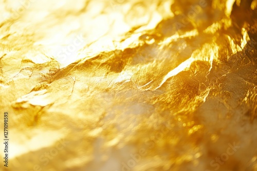 Crumpled gold texture with shiny light reflection. AI image