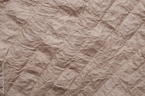 Crumpled kraft paper. Texture crumpled recycled old brown paper.