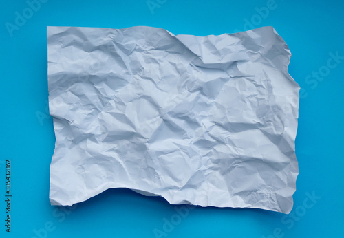 Crumpled paper isolated on blue background .