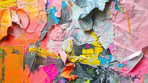 Crumpled paper textures and neon brushstrokes blend in a chaotic Dadaism wallpaper