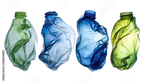 Crumpled plastic bottles in various shades of color