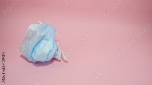 Crumpled Surgical COVID Face Mask on pink background