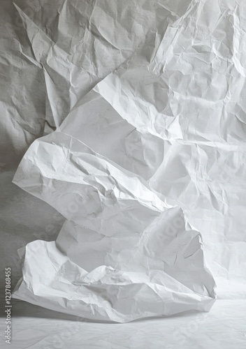 Crumpled white paper texture, studio backdrop, design element