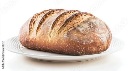 Crusty Artisan Bread Loaf on White Plate Bakery Food Photography
