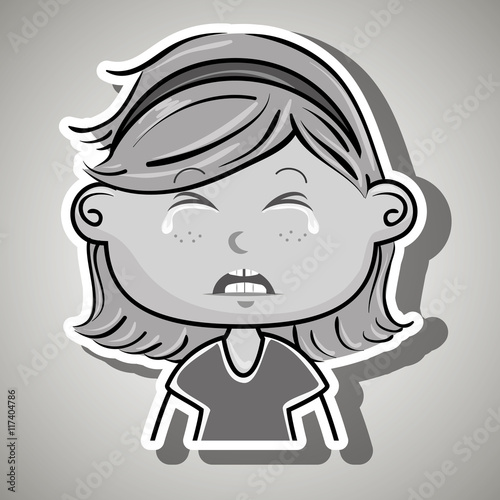 crying cartoon little girl on white background