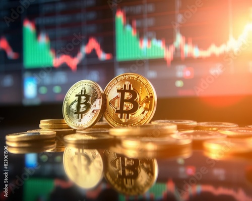 Crypto price chart with Bitcoin, financial growth, selective focus, theme of investment, vibrant, Fusion, backdrop of trading platform