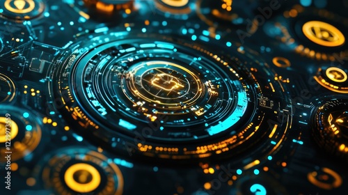Cryptocurrency exchange market with digital assets trading over a neon blue background.