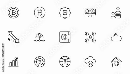 cryptocurrency set of web icons in line style bit.eps