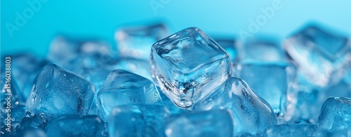 Crystal Clear: A collection of glistening, transparent ice cubes against a refreshing turquoise backdrop, creating a scene of cool refreshment.