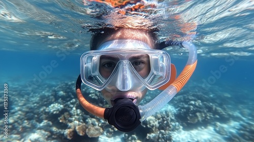 Crystal Clear Adventure - Diving Mask and Snorkel Set with High-Quality Silicone against Pristine Backdrop