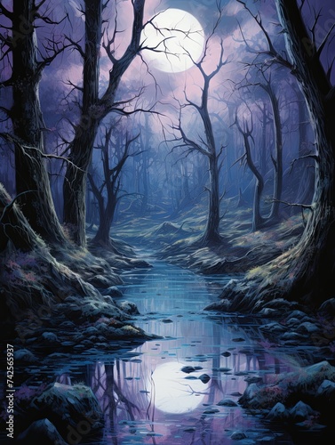 Crystal Clear Spring Lagoons Moonlit Landscape: Nighttime Lagoon Nature Artwork