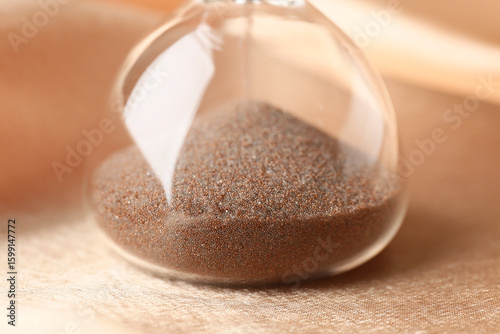 Crystal hourglass on beige background, closeup