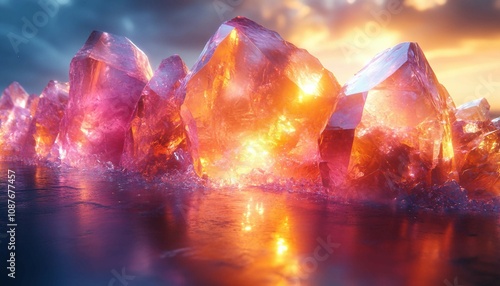 Crystal Radiance: Faceted Beauty Reflections, background with a prism effect, featuring refracted light in soft pastel hues bouncing off crystalline surfaces.