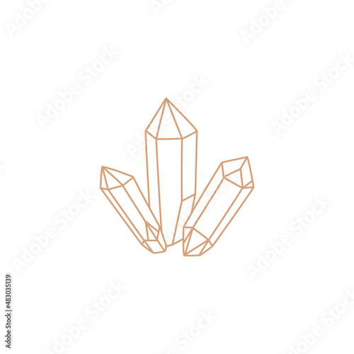 Crystal shape, quartz icon, gem stone gold simple contour line in boho style. Witch symbol and mystic design element, Hand drawn vector illustration isolated on white background. Modern flat style.