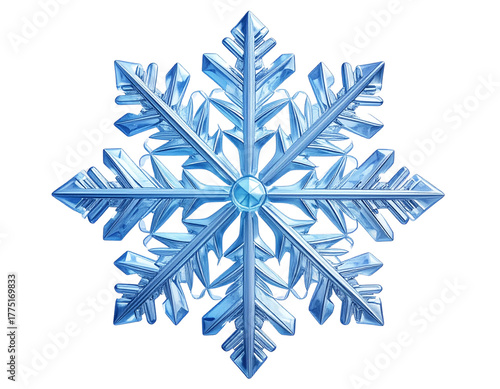 Crystal Snowflake Ornament with Icy Reflections, Front View, isolated on transparent background