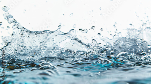 Crystal-clear water splashes and bubbles rise, creating a refreshing and vibrant scene against a pristine white backdrop.