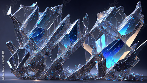 Crystals with a shattered glass effect refracting light background 3d wallpaper