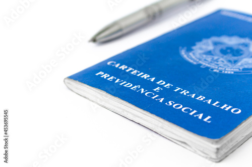 CTPS - Brazilian workbook and pen on white background with space for text.