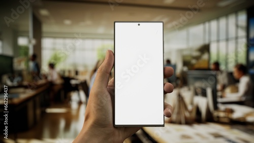 CU 30s Caucasian male holding a phone in vertical orientation, green screen
