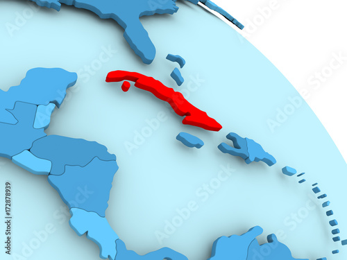 Cuba on blue globe