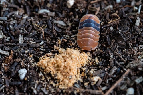 Cubaris sp. Amber ducky. Isopod eating foods