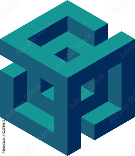 Cube logo, geometric vector design. Box logotype company, trendy techno emblem in isometric 3D style.
