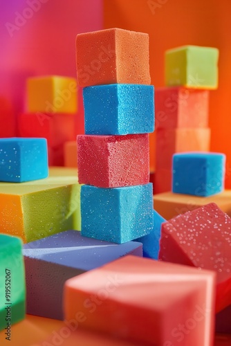 Cubes of Colorful Playfulness - Dynamic 3D Arrangements in Vibrant Hues for Creative Design Concepts and Backgrounds