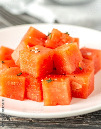 Cubes of vibrant red watermelon, seasoned and ready to eat