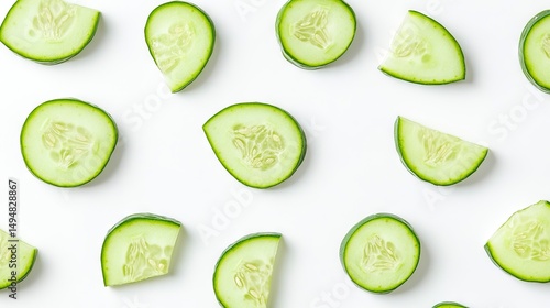 Cucumber Slices on White Background Food Pattern Healthy Eating Concept