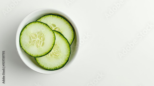 Cucumber with its vibrant green color, freshly sliced and isolated on a pure white background, captured from above.
