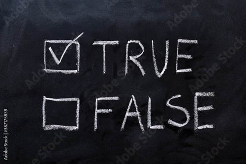 Cuestionario escrito en una pizarra con las palabras verdadero o falso