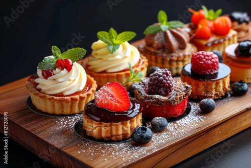 Culinary Creations: Gourmet Dessert Platter Featuring Miniature Pastries and Tarts