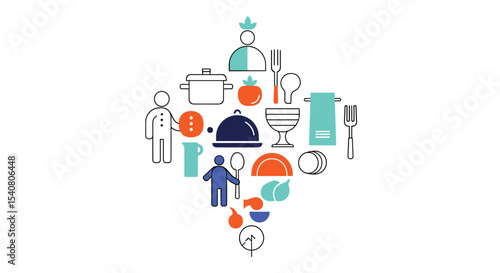 Culinary Education Iconography Displaying Diverse Foods and Utensils for Learning and Skill Development