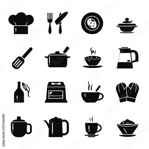 Culinary icons in silhouette representing cooking baking and dining experiences for chefs restaurants and food enthusiasts