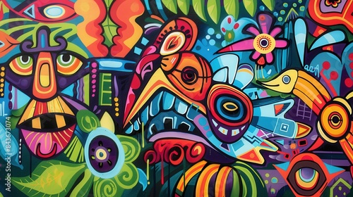 Cultural Fusion - Vibrant Graffiti Mural Blending Diverse Elements in Harmonious Composition