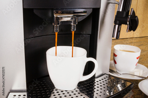 Cup of coffee in a coffee machine