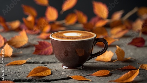 cup of coffee with autumn leaves