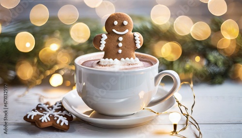 cup of coffee with christmas cookies