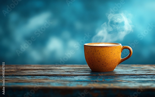 Cup of Hot Coffee with Steam Against a Beautiful Sunset Sky
