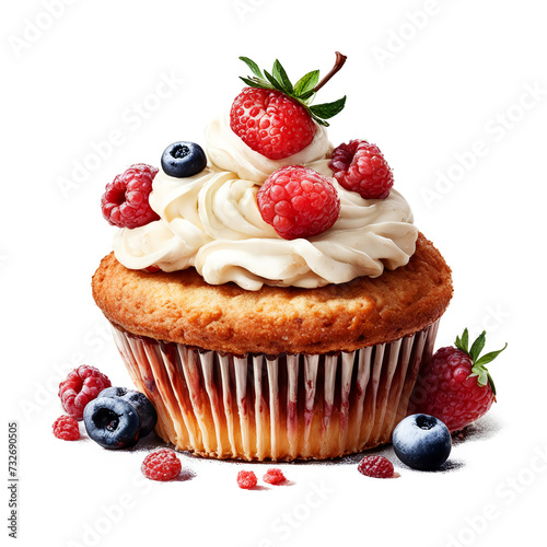 cupcake with cream and berries, sweet dessert, pastries. artificial intelligence generator, AI, neural network image. background for the design.