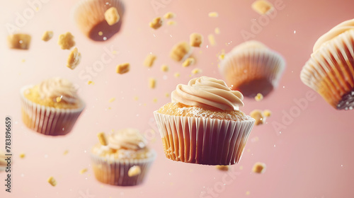 Cupcakes with cream. Flying muffins