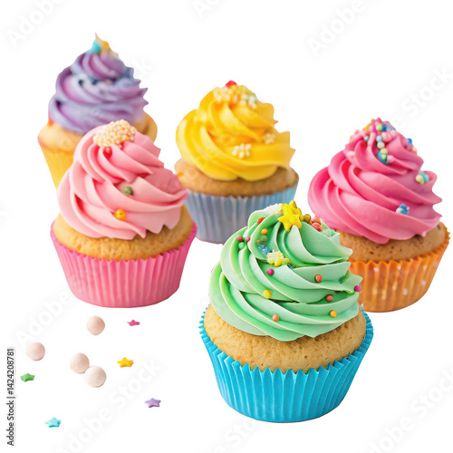 Cupcakes with frosting png colorful icing cupcakes png sweet treats png white background image
