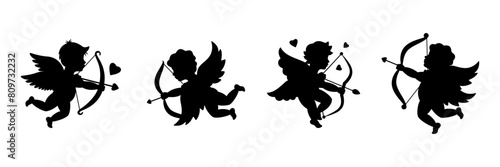 Cupids shooting arrows. Valentine's day. Love symbol. Angels with a wings. Cherubs silhouette. Vector illustration.