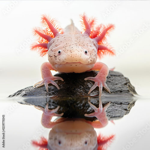 curious axolotl peeking out from behind rock, showcasing its vibrant colors and unique features